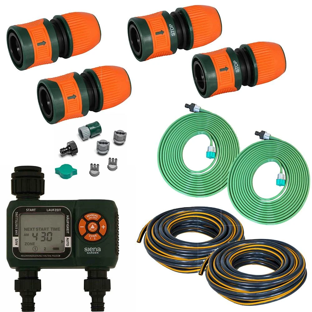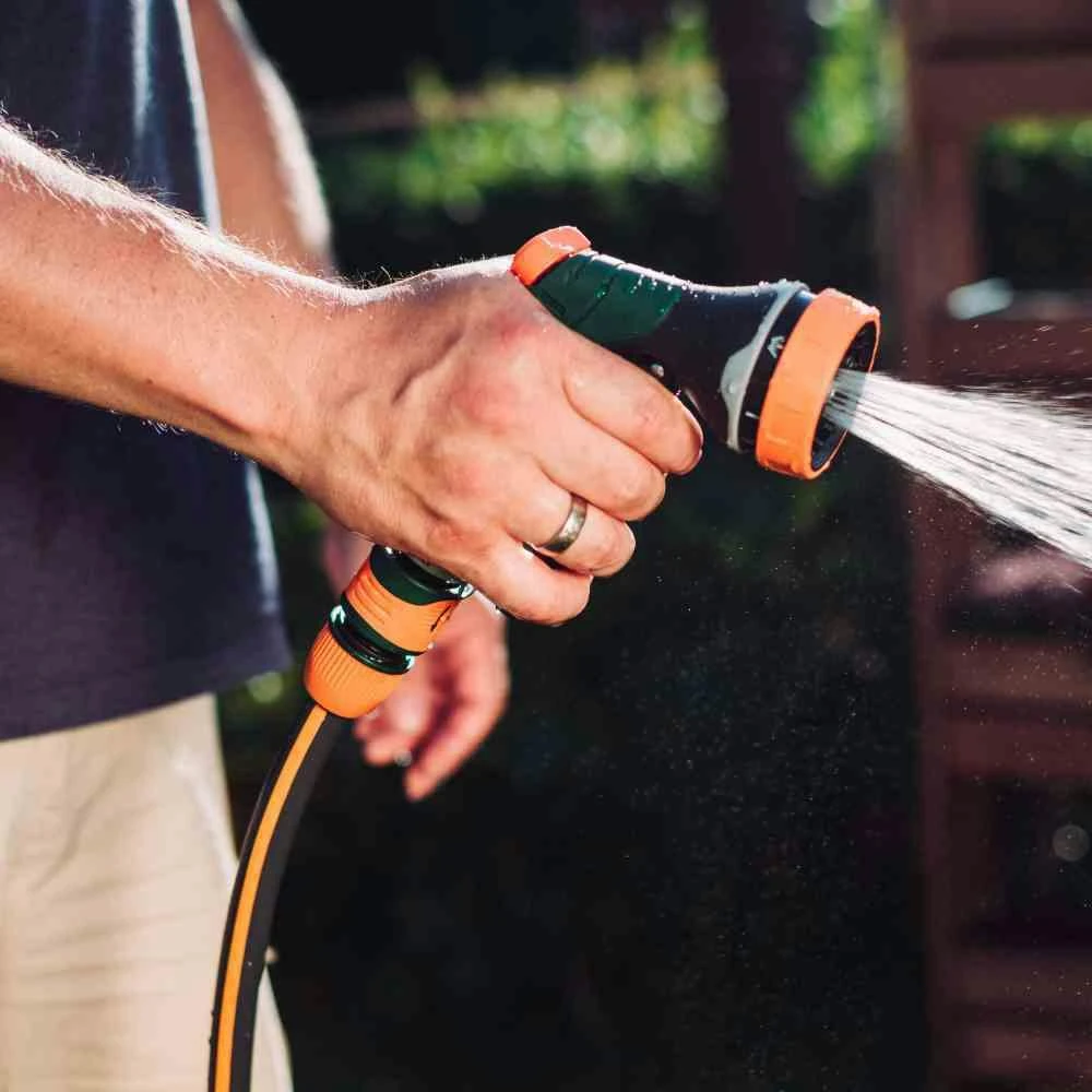 1x Spiralschlauchset mit Comfort Multibrause bestehend aus: 10m PU-Schlauch Comfort Multibrause 7-fach verstellbar Schlauchstück Wasserstopp Wasserhahnstück 1x Wandschlauchhalter aus robustem ABS-Kunststoff zum Aufhängen von Schläuchen und Kabeln kann fest an der Wand verschraubt oder einfach über den Wasserhahn gehängt werden für 25m Schlauch 13mm (½“) Tragegriff erleichtert auch den Transport