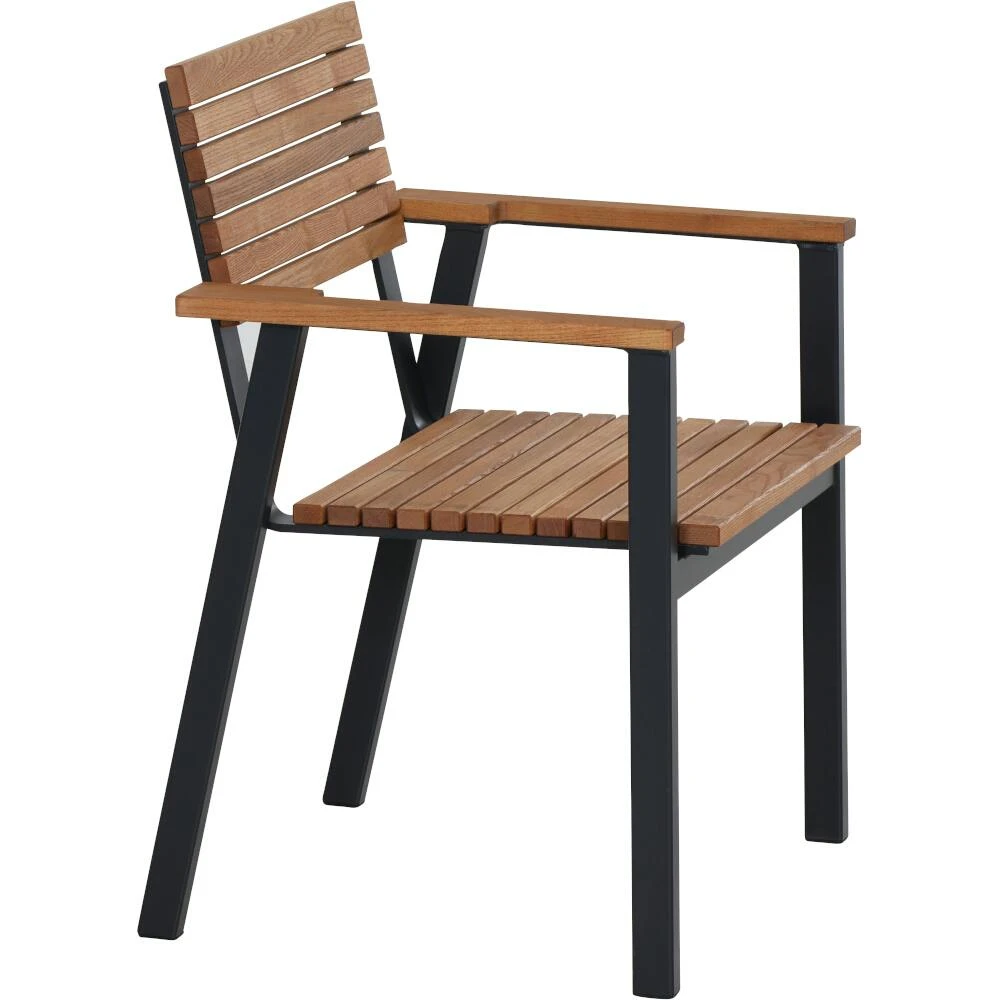 Gestell aus Aluminium pulverbeschichtet in matt anthrazit Flächen und Armlehnen aus Robinienholz FSC ® 100% geölt in natur Stapelsessel: L: 58,5 cm x B: 60 cm x H: 83 cm