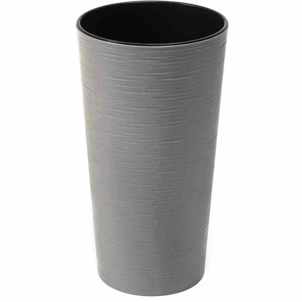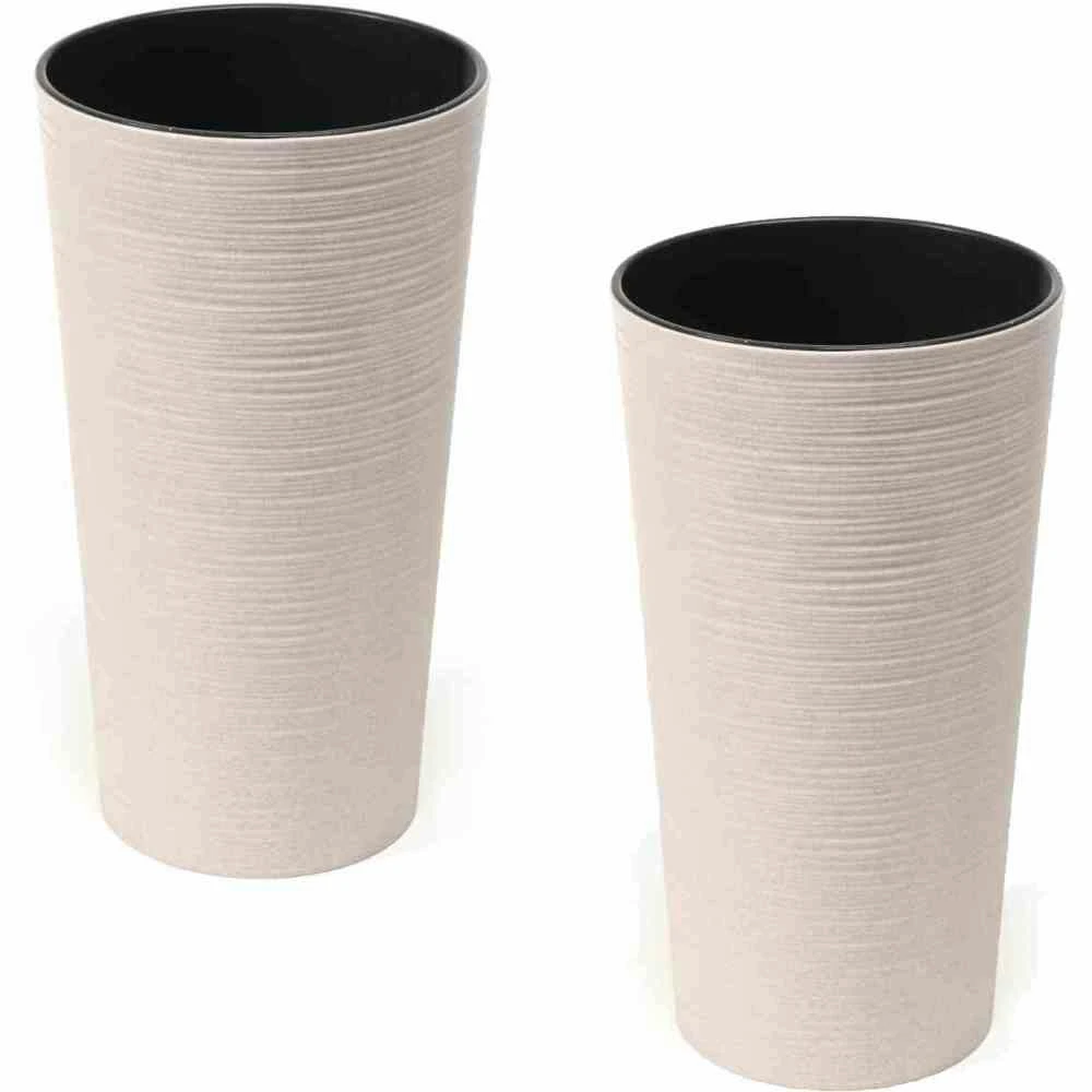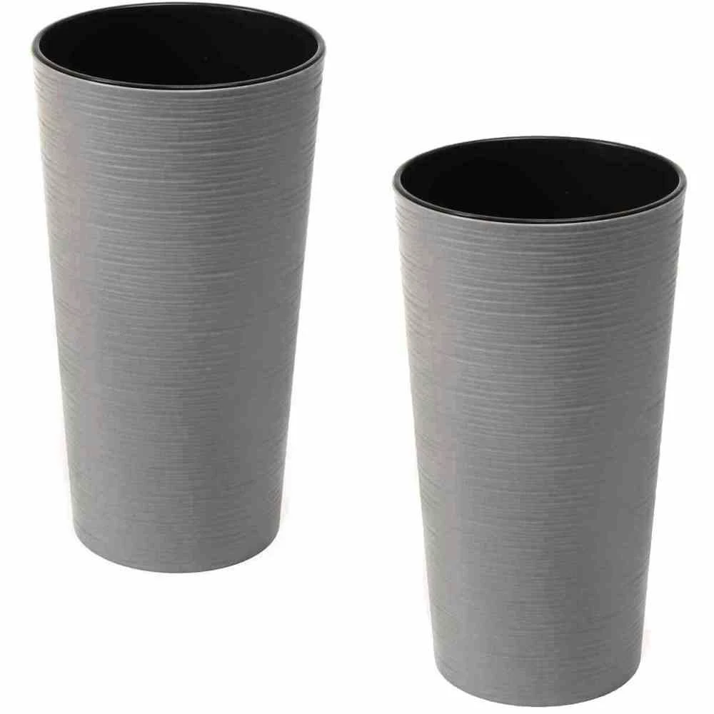2x SIENA GARDEN 840_27 Pflanzgefäß ECO Locon, grau, Ø 25 x 46,5 cm Kunststoffgefäß mit Holzfaseranteil und Einsatz Kunststoff in Rillenoptik mit bis zu 40 % Holzfaseranteil mit schwarzem Kunststoffeinsatz