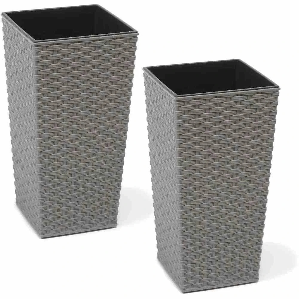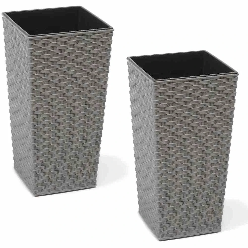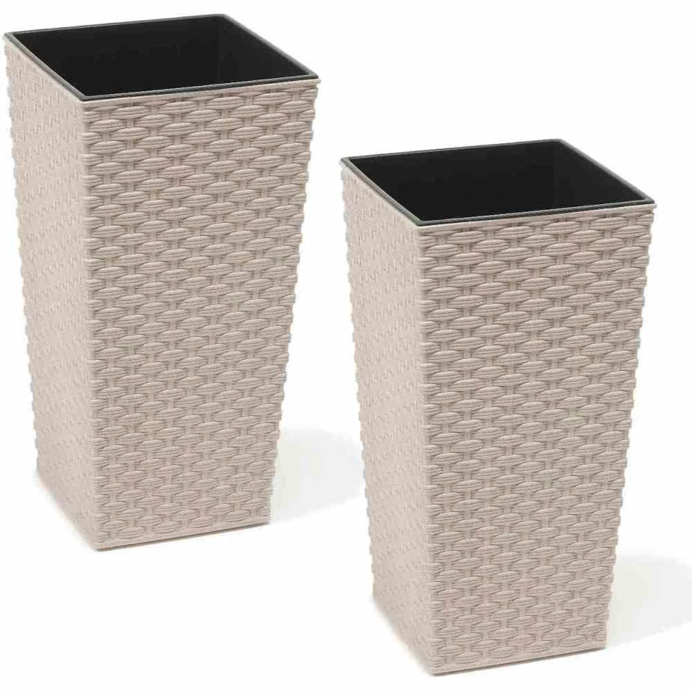 2x SIENA GARDEN 822_42 Pflanzgefäß ECO Paris, grün, 25 x 25 x 46,5 cm Kunststoffgefäß mit Holzfaseranteil und Einsatz Kunststoff in Rattanoptik mit bis zu 40 % Holzfaseranteil mit schwarzem Kunststoffeinsatz