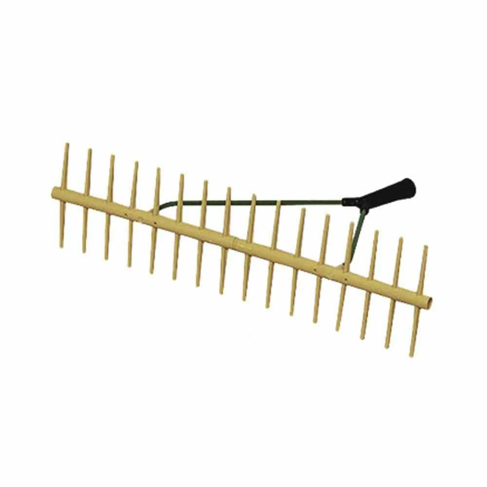 Heurechen, aus Kunststoff Metallgabel pulverbeschichtet in gelb, Arbeitsbreite: 64 cm, ohne Stiel, Stielaufnahme: Dülle, 16 Zinken, doppelreihig