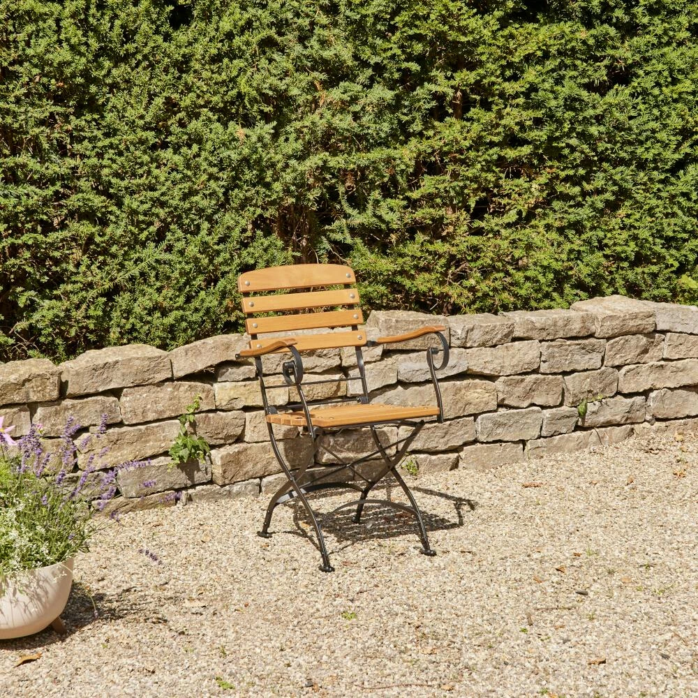 Gestell aus Stahl pulverbeschichtet in schwarz Flächen aus Robinienholz FSC® 100% geölt in natur Klappsessel: L: 57 cm x B: 60 cm x H: 87 cm