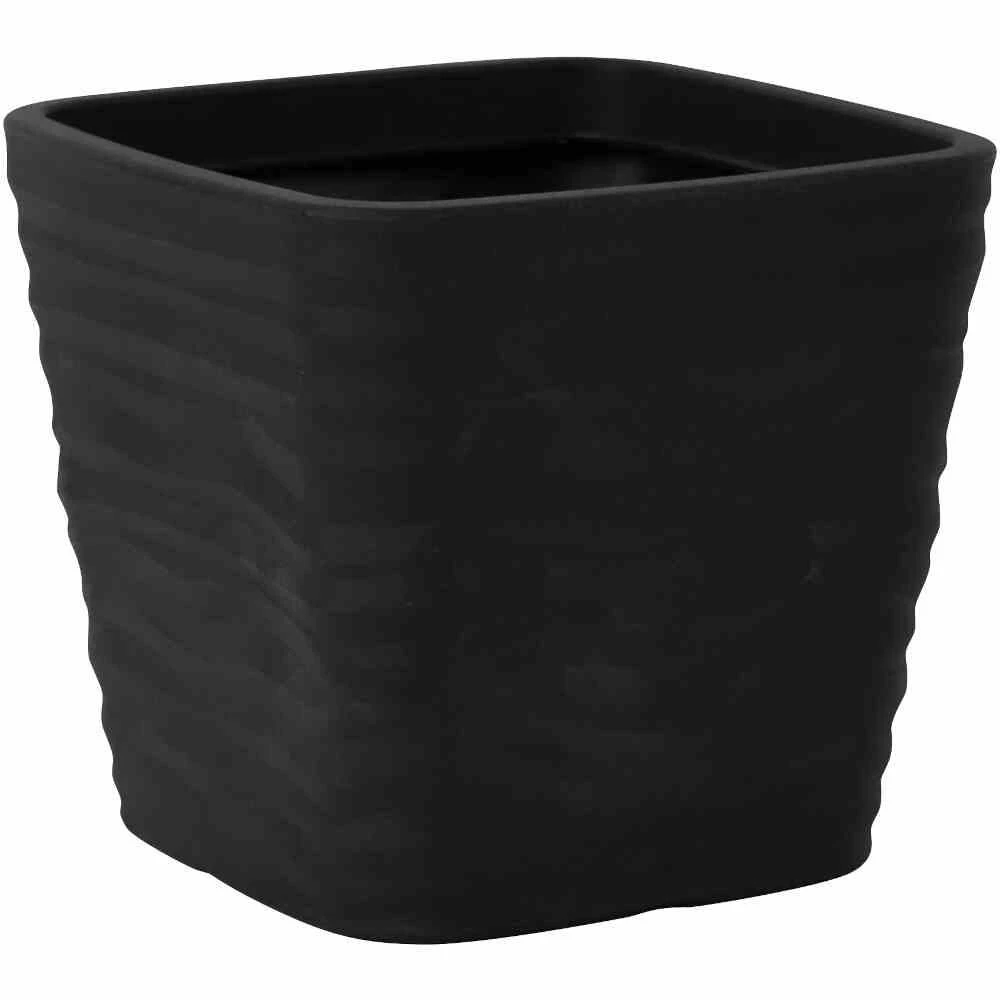 rotationsgefertigtes Kunststoffgefäß aus recyceltem Kunststoff mit 3D-Wellenoberfläche variierende Optik je nach Lichteinfall und Schattenwurf Vorbohrungen für Wasserablauflöcher