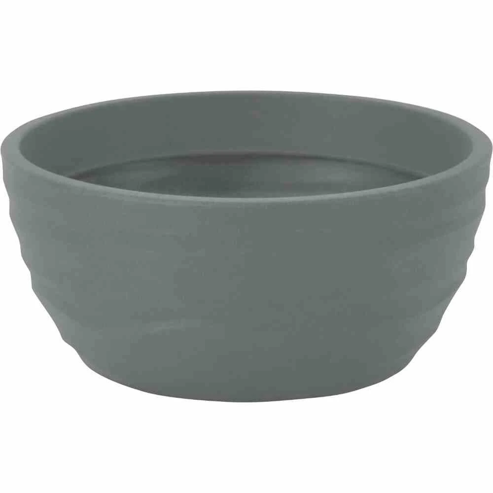 rotationsgefertigtes Kunststoffgefäß aus recyceltem Kunststoff mit 3D-Wellenoberfläche variierende Optik je nach Lichteinfall und Schattenwurf Vorbohrungen für Wasserablauflöcher