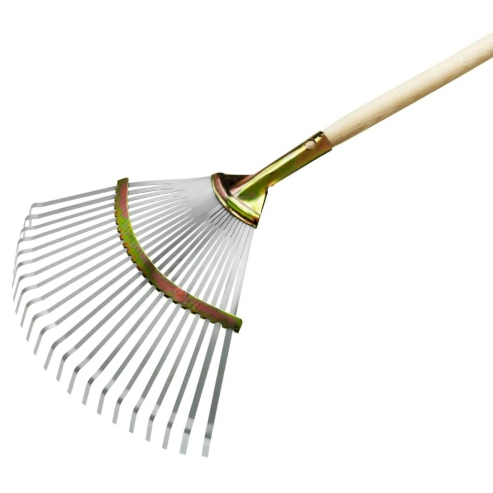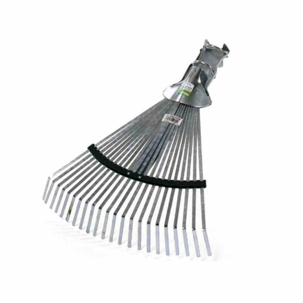 Fächerbesen, Laubbesen Profi, aus Metall verzinkt in gold und natur, Arbeitsbreite: 32-48 cm, ohne Stiel, Stielaufnahme: Dülle Ø 28mm, 22 Zinken, verstellbar 32 bis 48 cm