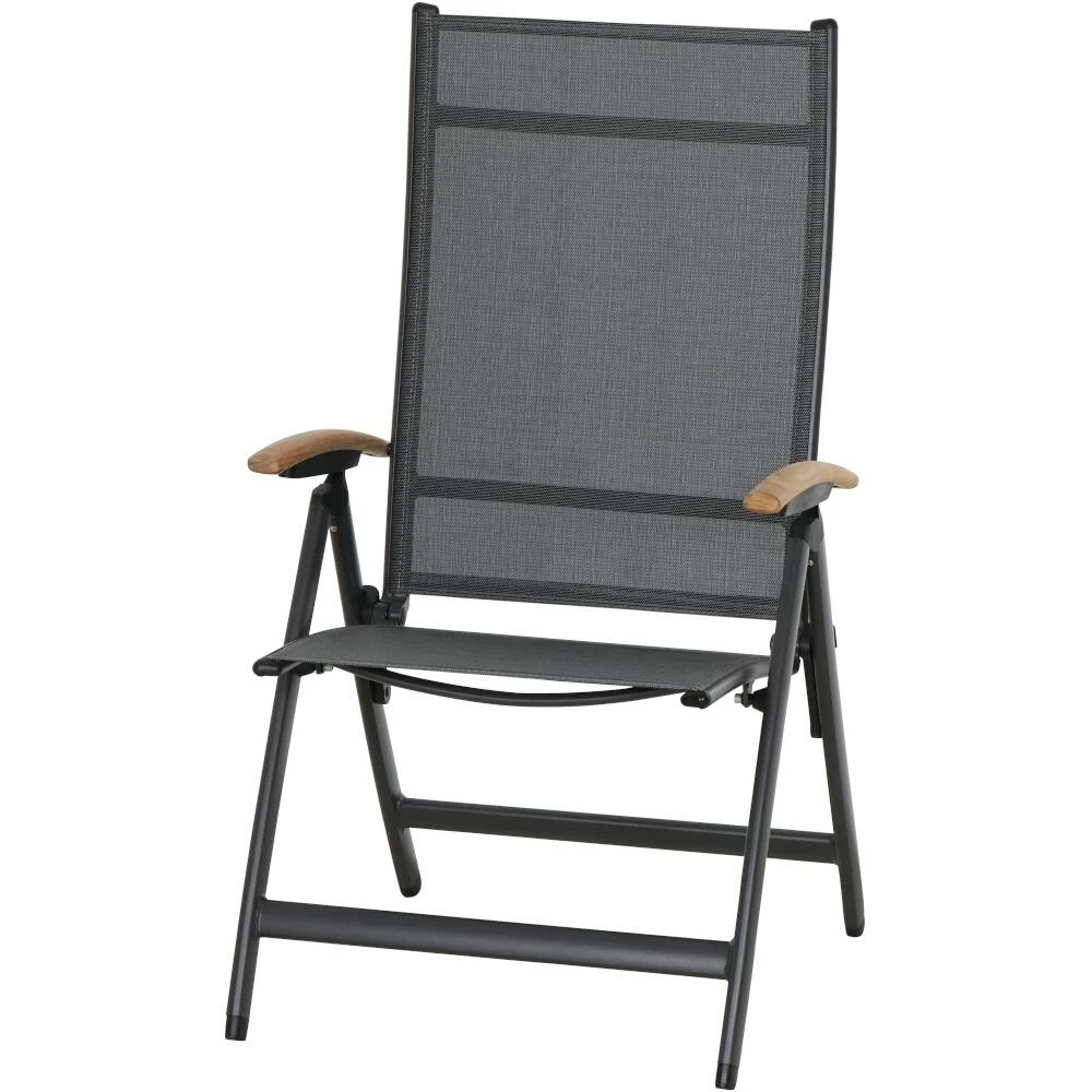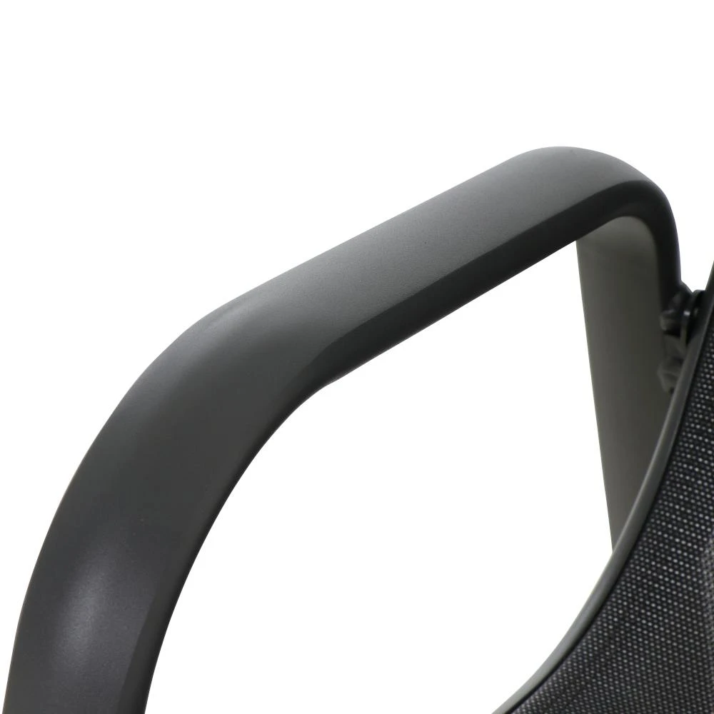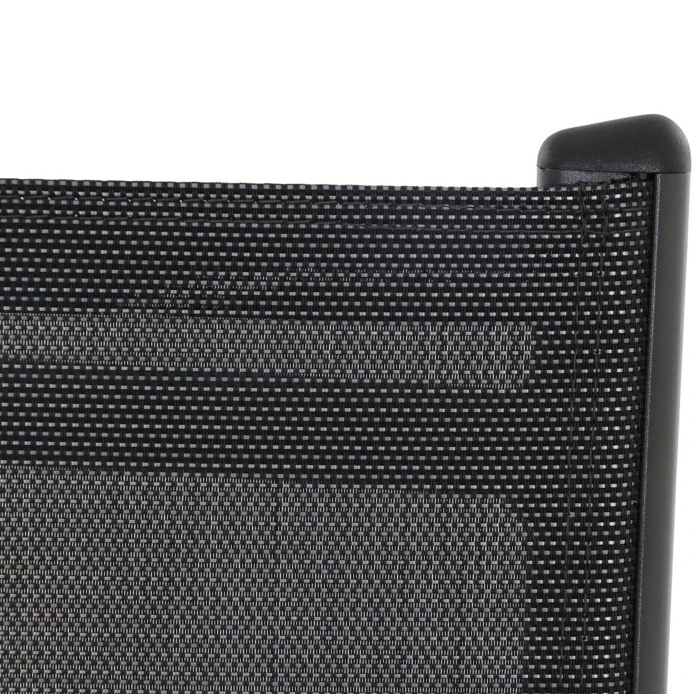 Gestell und Armlehnen aus Aluminium pulverbeschichtet in matt anthrazit Flächen aus Ranotex ® -Gewebe 2*1 in schwarz silber