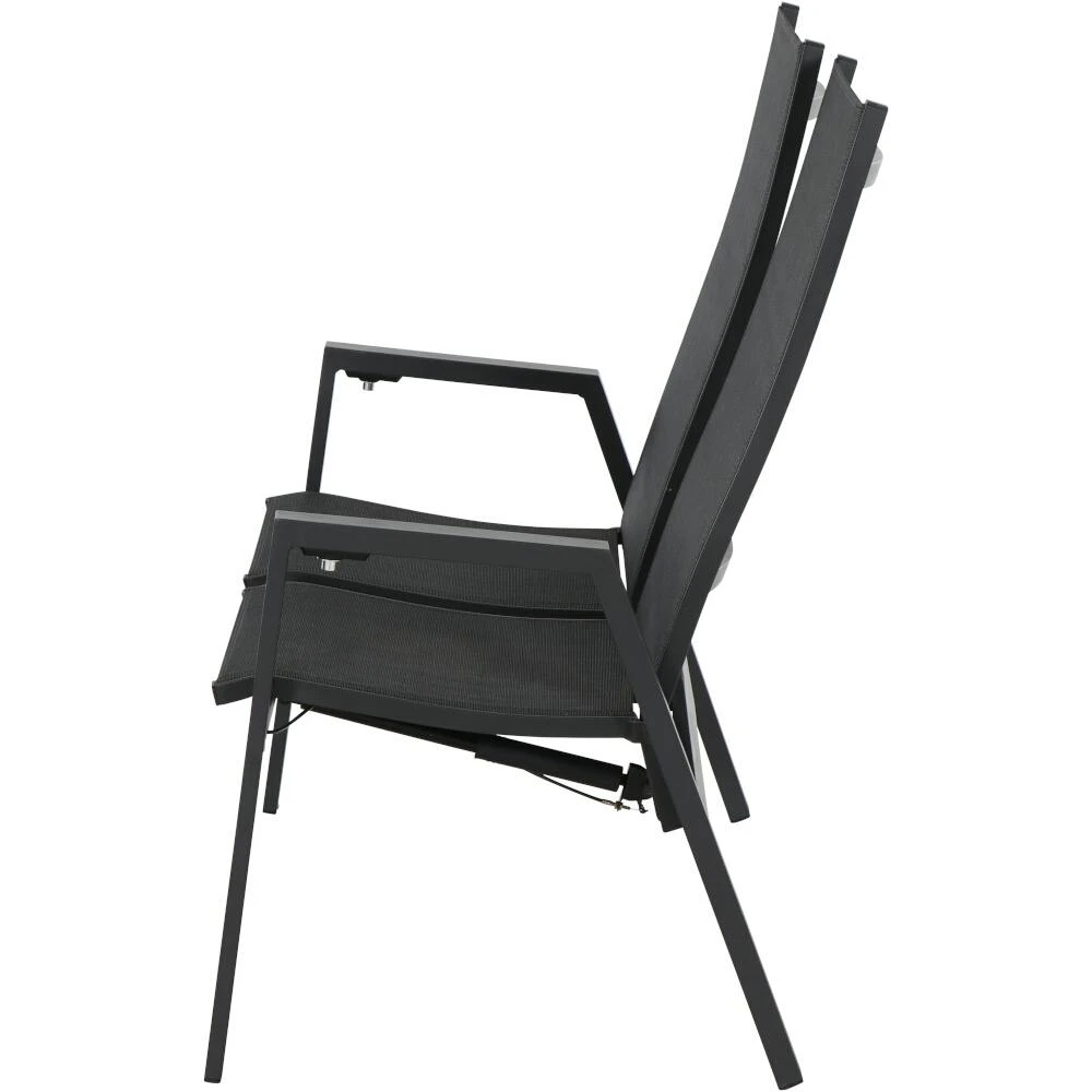 2er Bank Savona, stufenlos verstellbar, Gestell und Armlehnen aus Aluminium pulverbeschichtet in matt anthrazit, Flächen aus Ranotex®-Gewebe 2*1 in schwarz silber