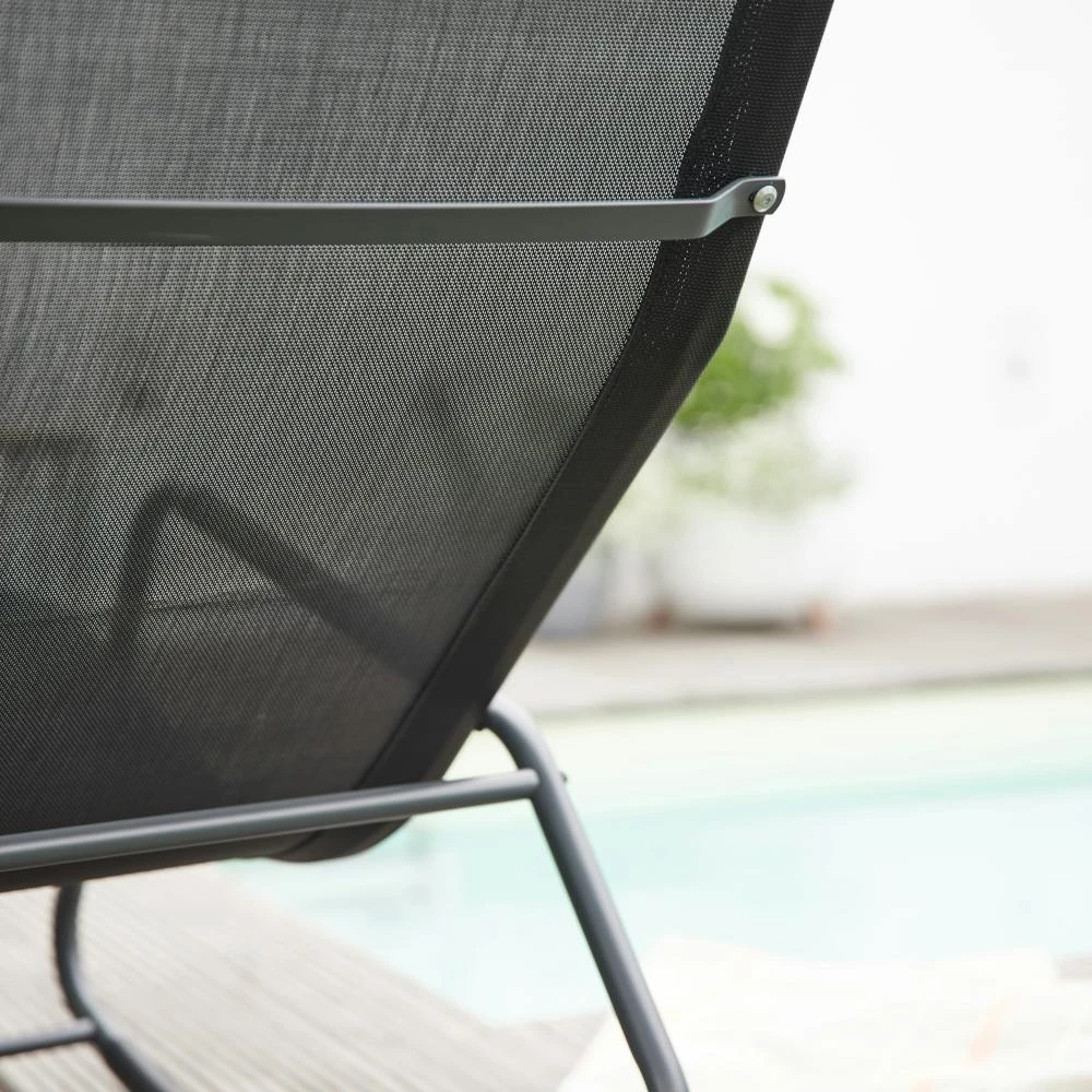 Gestell aus Stahl pulverbeschichtet in matt-anthrazit Flächen aus Ranotex®-Gewebe 2*1 in schwarz Schaukelliege: L: 143 cm x B: 57 cm x H: 84 cm inkl. Kissenauflage aus Polyester, 220 g/m² in Black Kissen handwaschbar Entspannter Liegekomfort