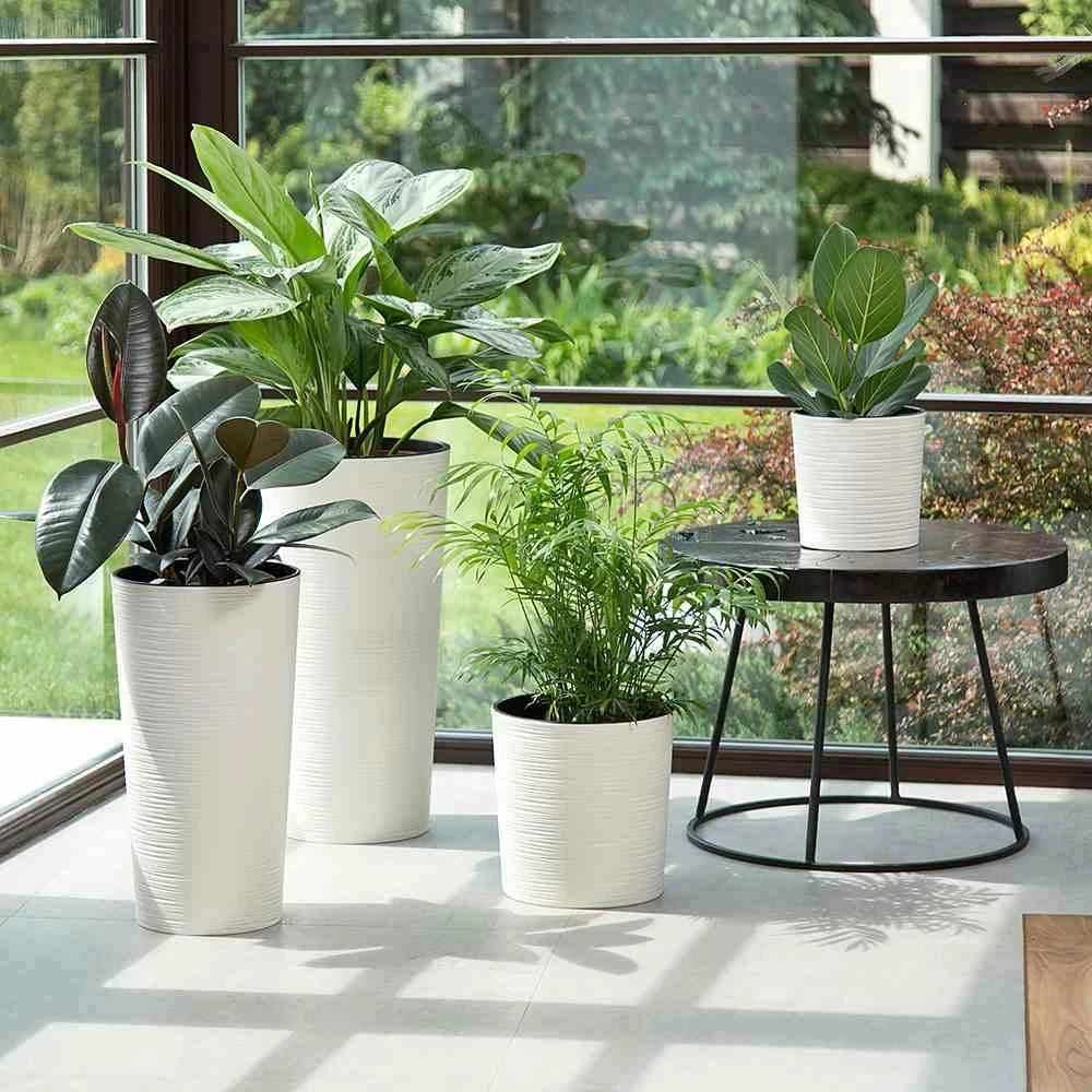 SIENA GARDEN Lens Pflanzgefäß Lens, Weiß Rillenoptik, Ø30×30,5 Cm