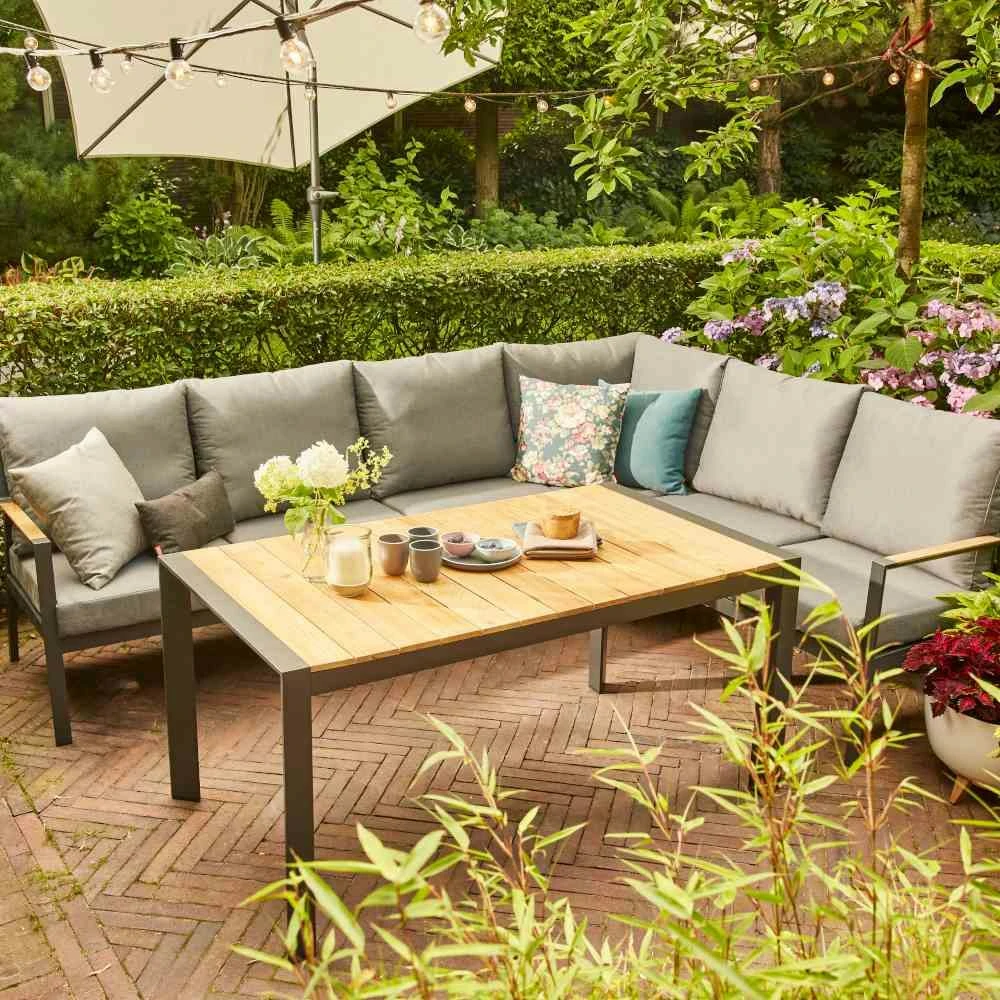 Londra 2er Bank rechts Alu, Kissen, Teak FSC 100%