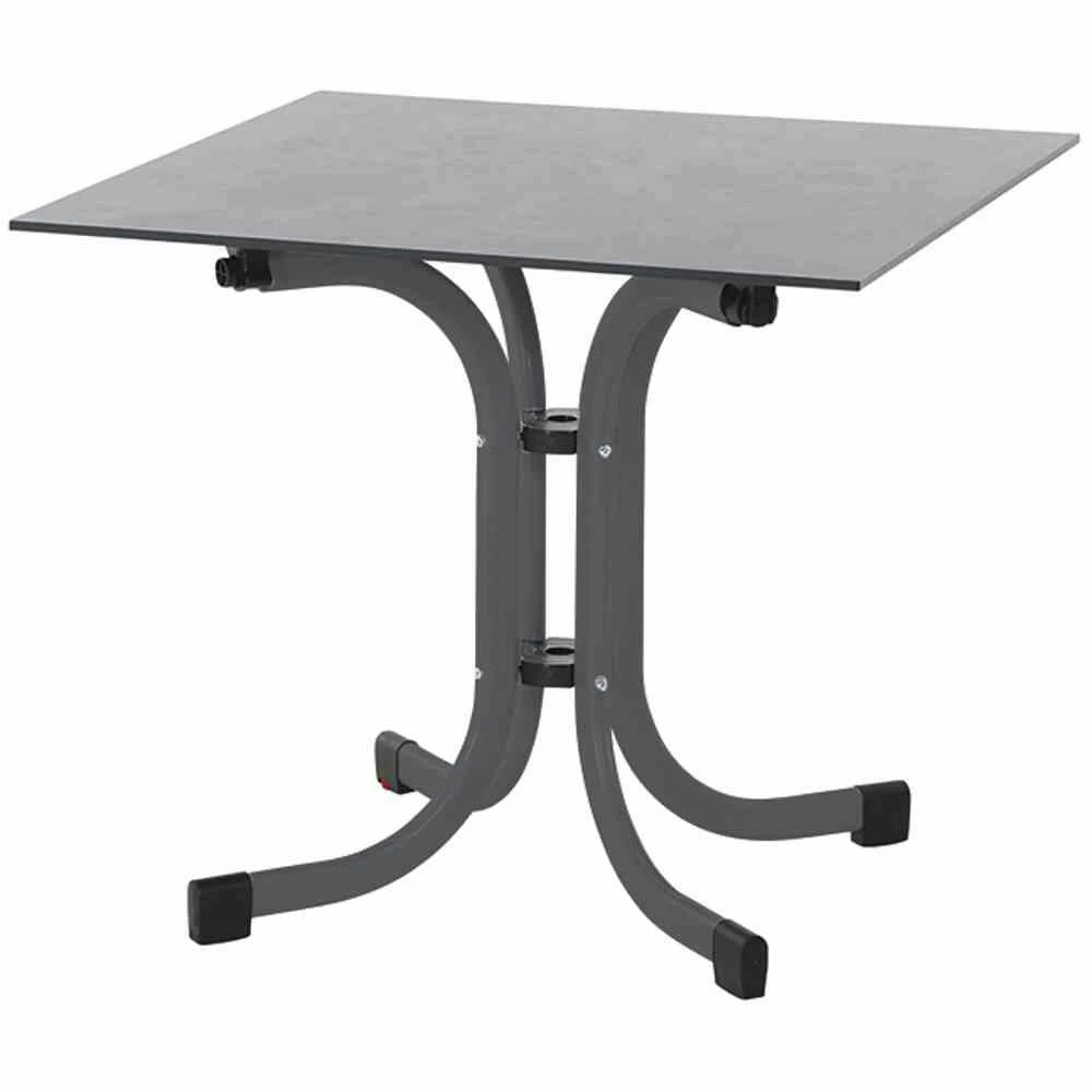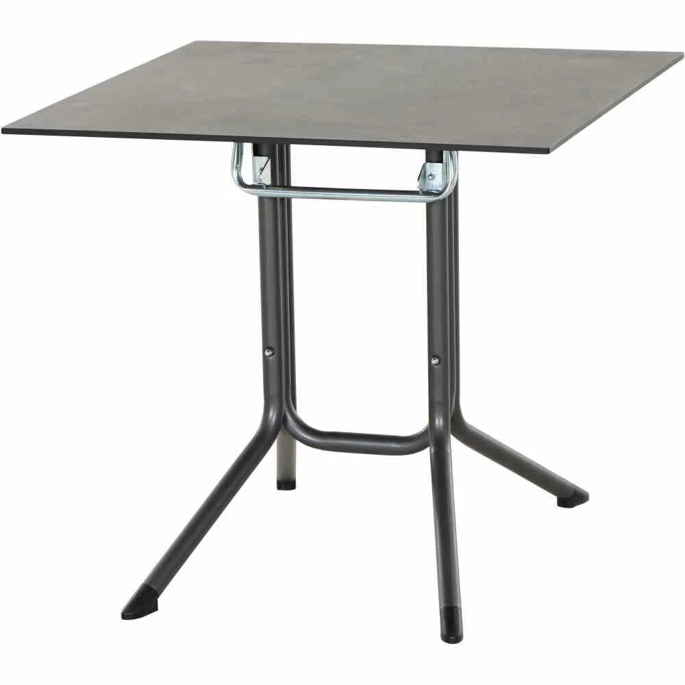 Klapptisch Sola, 80×80 cm, Gestell aus Stahl pulverbeschichtet in anthrazit, Tischplatte aus HPL in dark stone, mm stark