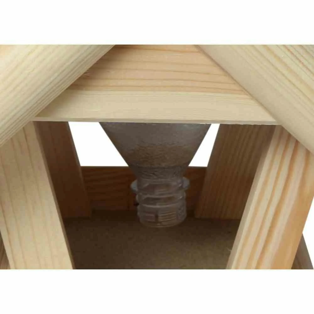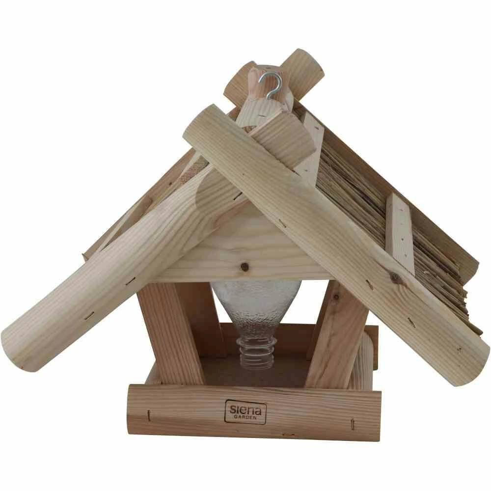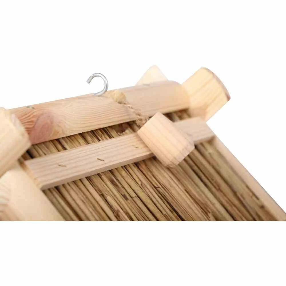- die Platte unter dem Reet schützt den Futterplatz vor Regen und Feuchtigkeit